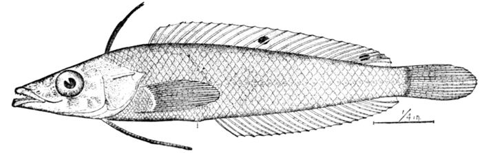 Gill separates the "three-forked hake" (Raniceps trifurcus) of northern Europe as a distinct family, Ranicipitidæ. In this species the head is very large, broad and depressed, differing in this regard from the codlings and hakes, which have also 540two dorsal fins. The deep-water genus, Bathyonus, is also regarded as a distinct family, Bathyonidæ.