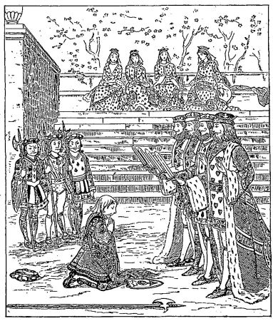 4. Divide the rustling of silken robes by two, and obtain three-fourths of a preposition and a vowel.