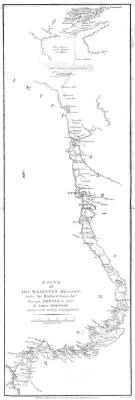 The time of my absence from England comprehends a space of little more than two years.—On the 27th of Oct. 1807, I sailed from Portsmouth with Sir Harford Jones, Bart. K. C. His Majesty’s Envoy Extraordinary and Minister Plenipotentiary to the Court of Persia, in H. M. S. Sapphire, Captain George Davies: after having touched at Madeira and at the Cape of Good Hope, we reached Bombay on the 26th of April, 1808: owing to some political arrangements we did not quit Bombay till the 12th September. We arrived at Bushire on the 13th October, and proceeded towards the Persian capital on the 13th December. H. M. Mission reached Teheran on the 14th February, 1809: on the 12th March the preliminary treaty was signed between Sir Harford Jones and the Persian Plenipotentiaries; and on the 7th May I quitted Teheran with Mirza Abul Hassan, the King of Persia’s Envoy Extraordinary to the Court of London, with whom I reached Smyrna on the 7th September, and embarked there on board H. M. S. Success, Captain Ayscough. Having at Malta changed the Success for H. M. S. Formidable, we finally reached Plymouth on the 25th November, 1809.