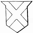 Make Cupid’s bow and arrow of heavy pasteboard, like Fig. 379. Let the bow measure about sixteen inches from tip to tip. Make the arrow twelve inches long, with a point or head three inches, and the feathers two inches, in length on the outside edge. Cut a notch in the feathered end, as shown in Fig. 380.[467] Strengthen the arrow by gluing a thin stick of wood along it to within one inch of the point. Gild both the bow and arrow, tie a silk cord to the tips of the bow, leaving it slack, and force the head of a worsted-needle into the point of the arrow (Fig. 381). Adjust the arrow by fitting the cord in the notch and pulling it back until the cord is taut; then fasten it to the bow by taking a few stitches with yellow silk through the bow and over the arrow. Fig. 382 shows how it should appear when in place.