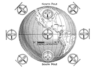 Suppose you were to place such a small wheel supported by its axis upon a larger wheel which also is revolving. The rotation of the larger wheel would so influence the smaller wheel that its axis would point in the same direction as the axis of the larger wheel. Why this is the case does not concern us here. Let it suffice that the larger wheel will cause the smaller wheel to behave in this manner. This is in accordance with a natural law. This law operates as unfailingly as the law which causes an unsupported body to fall to the ground.