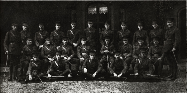On July 26th, 1914, the 6th Bn. Duke of Wellington’s Regt. went into camp near the little village of Marske for its annual training, and it was amid the peaceful moorlands of the Yorkshire coast that it heard the first rumblings of the storm to come. When the camp was suddenly broken up and the companies returned home on the fateful first Monday of August, there was a general feeling of tense expectation. They had not long to wait. At 6 p.m. the following day (Tuesday, August 4th), the orders for mobilization were issued from Skipton Drill Hall, and the Skipton men at once began to stream in. The outlying companies arrived during the night, and at noon next day the complete battalion, with a heterogeneous transport commandeered from willing neighbours, entrained for Immingham Dock under the command of Lieut.-Col. John Birkbeck, of Settle. The rapidity with which the change from peace to war conditions was effected is abundant testimony to the keenness of all ranks and to the practical character of the Territorial organization; but the chief credit of the successful move must be given to the sleepless labours of the three South African veterans, Capt. Sidney Marriner (Adjutant), Lieut. John Churchman, D.C.M. (Quartermaster), and Regimental Sergt.-Major Buckley. 17