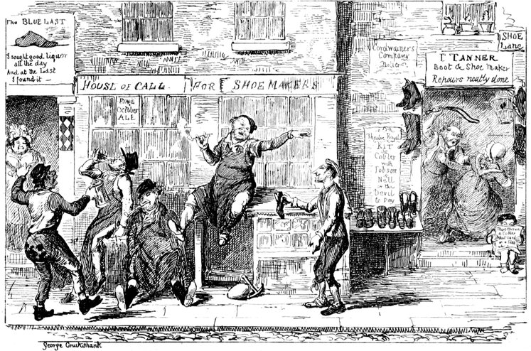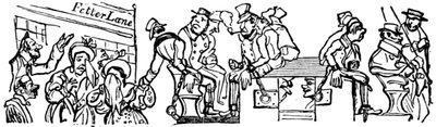 The late Mr. Tilt, of Fleet Street, first conceived the idea of the "Comic Almanack," and at various times there were engaged upon it such writers as Thackeray, Albert Smith, the Brothers Mayhew, the late Robert Brough, Gilbert A'Beckett, and it has been asserted, Tom Hood, the elder. Thackeray's stories of "Stubbs' Calendar, or the Fatal Boots," which subsequently appeared as "Stubbs' Diary;" and "Barber Cox, or the Cutting of his Comb," formed the leading attractions in the numbers for 1839 and 1840. The Almanack was published at 2s. 6d., but in 1848-9 the size was reduced and the price altered to 1s. The change did not produce the increased circulation expected, and in 1850 it was again enlarged and published at 2s. 6d. In this year some very spiritedly designed folding plates were added, and this feature continued until 1853, when Mr. Tilt's partner, the late Mr. Bogue, thought proper to discontinue the work.