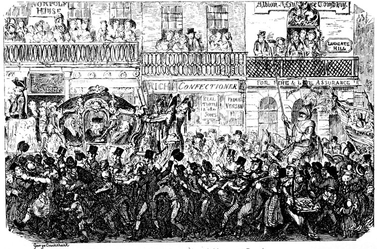 31st.—The King of Prussia visited Newgate in the morning, and Drury Lane Theatre at night. His Majesty saw murderers at both places, and admired the new drop at each.