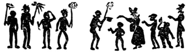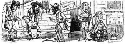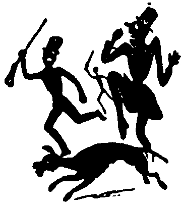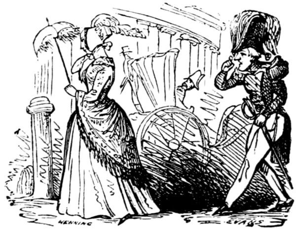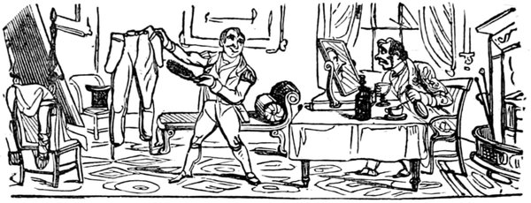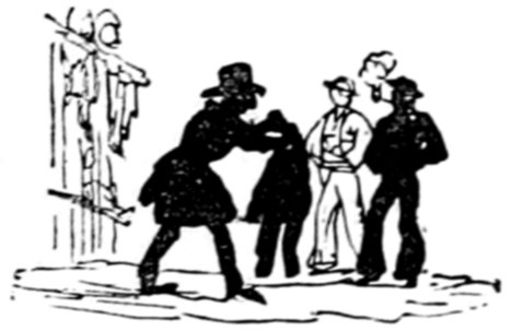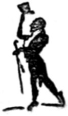 [The scene openeth, and discovereth the Shade of the great Astrologer, Lilly, enveloped in a fog, who claspeth Francis Moore in his arms, and mizzleth off with him in a mist.—N.B. The renowned Physician droppeth his threadbare mantle, which falleth on Rigdum Funnidos, who maketh his exit therewith joyfully.