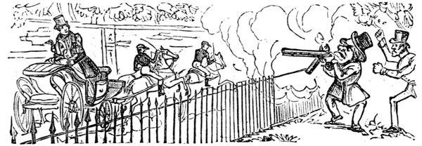 Though, touching Comets, Tycho Brahe, Kepler, Halley, Sir Isaac Newton, and others of that stamp, do deny their malign influence 6on mundane affairs, yet I, Rigdum Funnidos, holding in far greater reverence the wisdom of our ancestors, and the sage opinion of my renowned defunct predecessor, Francis Moore, do maintain, that they cast a sinister aspect on this terrestrial globe; yea, and do mightily, in a most adverse fashion, affect the same. Where-fore, I say, look, when the Great Comet cometh, for a sufficient reason, in the coming thereof, for every thing which shall happen contrariwise; whether it be the falling of kings, or the falling of stocks; the quarrels of nations, or the squabbles of matrimony; the crash of empires, or the smash of crockery; the tyranny of despots, or the scolding of wives:—yea, I do say again, place them all to the account of the Great Comet.