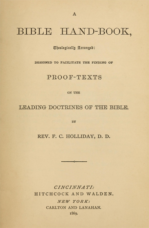 It will be found a time saver to all students of the Bible, and a convenient help to young ministers and Sunday-School teachers. Trusting that the Divine blessing will rest upon this humble effort to make the Bible its own expositor on the topics herein presented, the author submits it to the public.