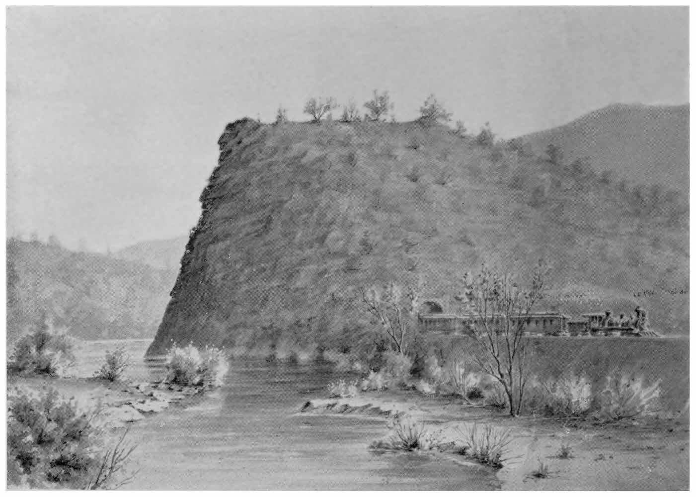 Here the legend ends, and we take up the threads and weave a little net of well authenticated facts. When the San Francisco and North Pacific Railway wound through the picturesque canyon of Che-hool-be-da-dah (Russian River) a tunnel pierced the base of Dah-nol-yo, thus opening the door of Ca-ba-ba’s prison and liberating him. In fear of detection, and a return to his solitary quarters, he cautiously crept to his childhood’s home only to find desolation. Turning his eyes to the summit of Dah-nol-yo he was transfixed with terror at beholding the face of Bu-tah-so looking grimly down upon him. Held by an invisible power he gazes on, unable to turn his eyes even to the bear, deer, quail and squirrel, that venture so near, peering in wonder at the lone man who is to suffer on through all eternity as he keeps his silent vigil of Dah-nol-yo.