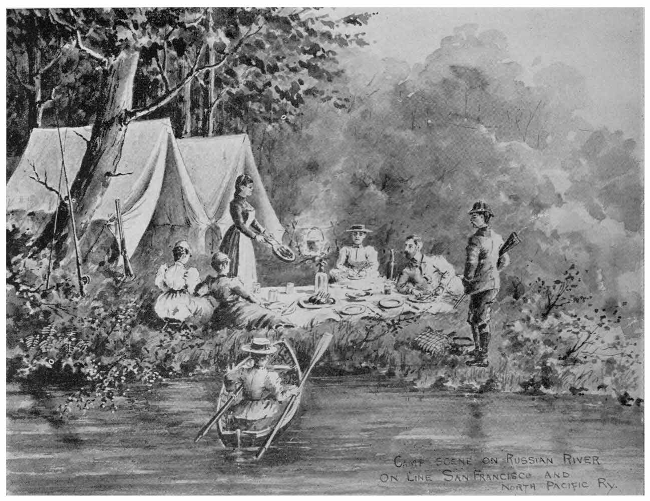 The way to reach the Russian River and its scenic surroundings is by the San Francisco and North Pacific Railway, the Picturesque Route of California.
