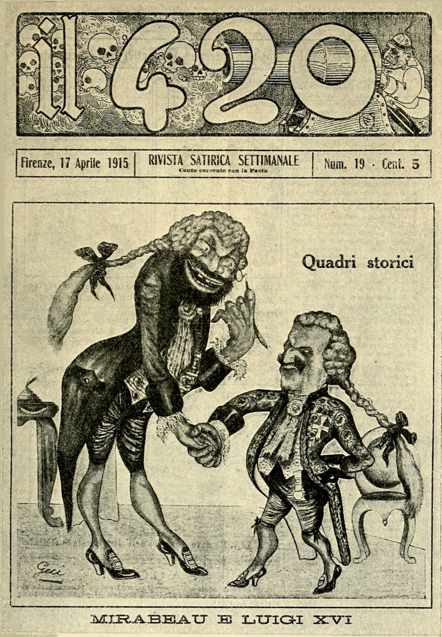 Es gibt nur ein Land, dessen Presse Frankreich im Deutschenhaß zu überbieten suchte, und das ist Italien. Ist man doch dort so weit gegangen, zu dem Zwecke Deutschland und Österreich zu bekämpfen und Italien zum Kriege gegen seine Verbündeten zu hetzen, eigens Witzblätter zu gründen. „Il Numero“ ist ein solches Erzeugnis des Krieges, dem die Aufgabe zufiel, die Leidenschaften gegen die italienische Neutralität und die Zentralmächte, vor allen Dingen gegen Österreich, zu schüren. Von den italienischen Witzblättern steht künstlerisch dieser „Il Numero“ immerhin am höchsten. Was die andern leisten, ist unsagbar trostlos. Auch das Blatt des italienischen Klerus „Il Mulo“, das in Bologna erscheint und wohl so ziemlich das einzige ist, das nicht deutschfeindlich auftritt, sondern eher noch eine dem deutschen Reiche gegenüber freundliche Absicht verfolgt, besitzt unter seinen Zeichnern nicht einen, der auch nur den geringsten Ansprüchen, die man an einen Karikaturisten stellen muß, gerecht wird. Immerhin soll ausdrücklich anerkannt werden, daß der italienische Klerus hier ein Blatt geschaffen hat, das wenigstens das verbündete Deutschland und Österreich nicht angreift. „Il Mulo“ kämpft wie „Bastone“ „gegen französische Freimaurerei und englischen Krämergeist“. Ein doppelseitiger Karton in der Weihnachtsnummer richtete sich sogar ausdrücklich gegen Frankreich, weil es sich mit dem Waffenstillstand während der Weihnachtsfeiertage nicht einverstanden erklärt hatte.