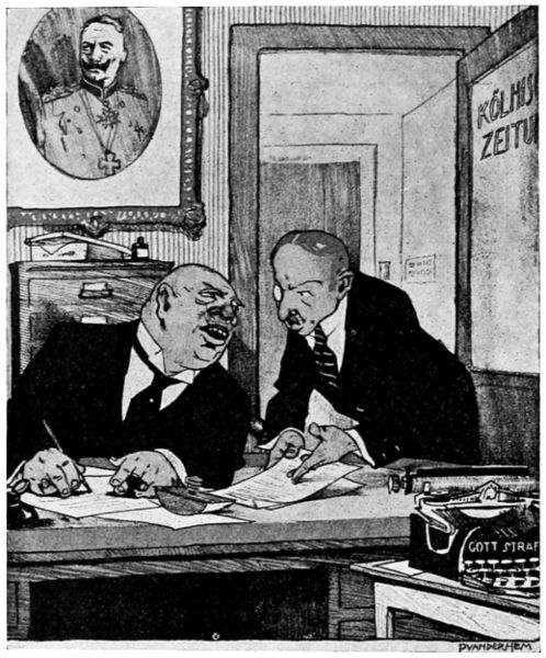 Außerordentlich groß war der Absatz, den die führenden deutschen Witzblätter fanden. Der „Kladderadatsch“ mußte einzelne Nummern siebenmal neu drucken lassen, „Lustige Blätter“, „Ulk“, „Jugend“ und „Der wahre Jakob“ konnten ihre Gesamtauflagen wesentlich erhöhen. Solche Zeitschriften wirken aufklärend im Auslande, denn der vom Feinde irregeführte Neutrale wird sich sagen, wer so zu lachen vermag, der kann nicht, wie man mir einreden will, geschlagen am Boden liegen. Auch der neu entstandene „Brummer“ hatte großen Erfolg. Und die verwöhntere Ansprüche befriedigenden Nummern der „Kriegszeit“ aus dem Verlage von Paul Cassirer in Berlin, in denen Führer der deutschen Griffelkunst wie Max Liebermann und August Gaul dem Geiste der Zeit künstlerischen Ausdruck gaben, fanden weit über den Kreis der eigentlichen Graphiksammler hinaus zahlreiche Freunde. Ganz erstaunlich aber war der Umsatz in Postkarten; ein einziger Berliner Verlag verkaufte von Ansichtskarten mit Karikaturen in einer Woche dreiviertel Millionen!