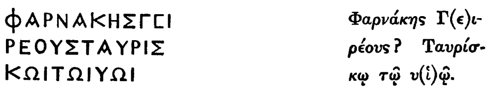 No. 4 is without points of interest. No. 5 adds to other Oriental names found at Comana Pharnaces and the name of his father, which, in Miss Bell’s copy, reads Giris.
