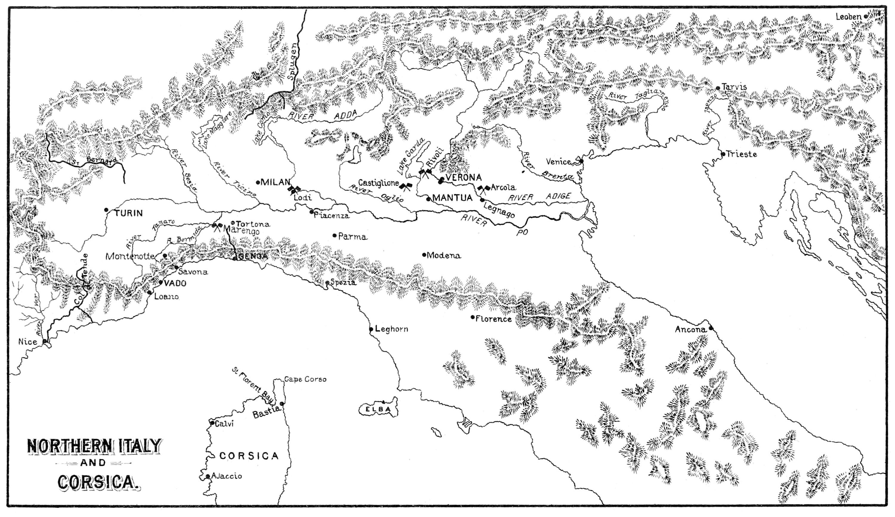 [265] Jurien de la Gravière, Guerres Maritimes, vol. i. p. 288 (4th edition); also James, Naval History, vol. ii. p. 264 (edition 1847). Other authorities say the 8th. The reconcilement seems to be that Bruix did not take his fleet to Genoa, but only a detachment; the main body anchoring in Vado Bay. He would thus leave Genoa the 6th, Vado the 8th.