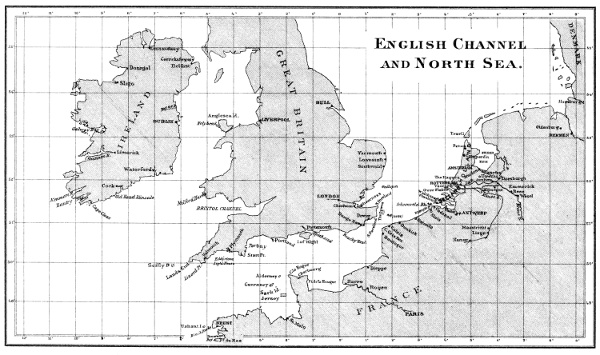 [309] In the English Channel and the neighboring western coasts of Europe, winds from S.W. to N.W. prevail during three fourths of the days of the year, and are often exceedingly violent.