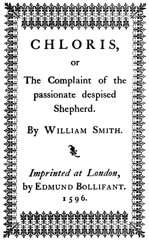 | William Smith. | Chloris, or the Complaint of the passionate despised Shepherd. (1596.) | 171 |