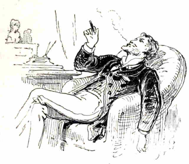 Comme il portait des dépêches et des lettres particulières, il se présenta à dix heures chez son chef; son sac l'accompagnait, et il le déposa aussi furtivement que cela était possible sous la première chaise à côté de la porte; mais le coup d'œil d'aigle du ministre avait vu.—Le comte de T... accueillit froidement, quoique courtoisement, son nouveau subordonné, devant lequel il posa de son attitude la plus digne, assis dans son fauteuil de travail, le[p. 31] buste renversé, et la main gauche éparpillant les papiers sur la grande table, tandis que la droite et le regard écoutaient. Le pauvre Tomy pensait qu'il n'avait jamais rencontré un pareil glaçon—toujours et toujours un: Parfaitement, parfaitement.—Enfin, la conversation officielle close, le comte de T... dit assez brusquement: