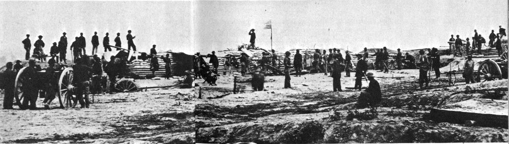Federal pickets in front of Union Fort Sedgwick, opposite Confederate Fort Mahone. Note how the gabions are being used.