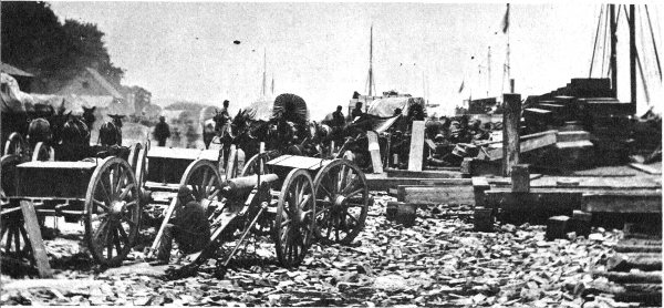 1-4. Scenes at City Point, Va., showing some of the supplies and munitions destined for Grant’s army. An Episcopal bishop from Atlanta, visiting Grant at City Point, was awed by the abundance of military stores that he saw—“not merely profusion, but extravagance; wagons, tents, artillery, ad libitum. Soldiers provided with everything.”
