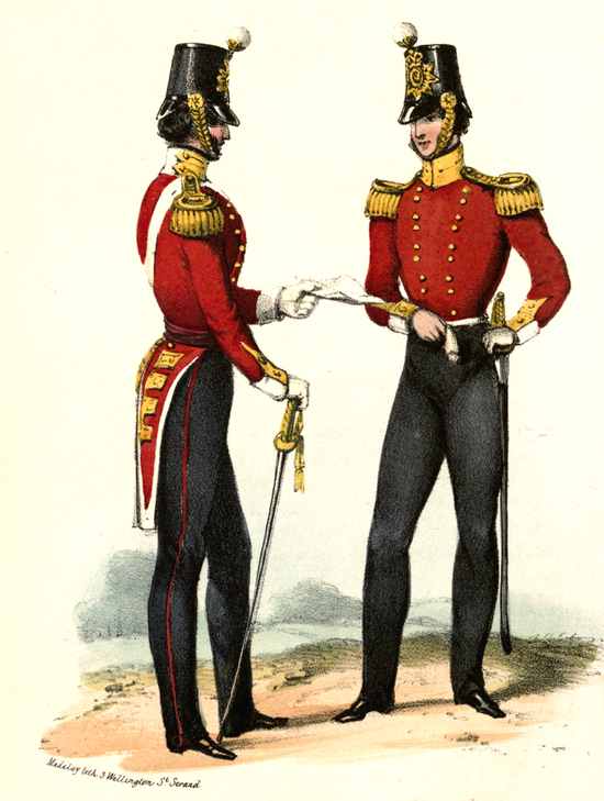 In the summer of 1826 the regiment marched to[39] Greenock, where it embarked for Liverpool; it was stationed three months in Lancashire, the head-quarters being at Bolton, and in October embarked at Liverpool for Ireland; it landed at Dublin, from whence it marched to Mullingar; where the head-quarters were stationed until April, 1827, when they were removed to Galway.