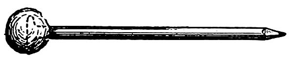 It will be necessary to leave small holes between the lead seams at intervals for the hooks to pass through. However, these can be burned over at any time, and where the ends of the top should overlap the end of the chamber the lead can be left turned up until the staging is removed, after which it can be turned over and 118burned. The hooks are made of ⅝ round iron and have a long thread cut on one end, so as to allow for adjustment. The details are shown in Fig. 41. There are also numerous fittings used in connection with these condensing chambers, but they are all easily made and are too simple to take up space here in explanation. Should it be necessary to use nails for any purpose on the inside of the chamber, the heads should be dipped into a pot of melted lead that has not quite set until the adhering ball of lead is about ½ inch in diameter, as shown in Fig. 43. These nails can be driven in place and the lead burned to the sheet lead, which will prevent corrosion.