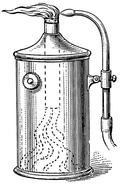 When necessary to fill the torch the tube can easily be removed and the torch filled. A separate filling screw can be used if desired. Even with this form of torch an excess of alcohol will occasionally get into the wick when used in a horizontal position and increase the size of the blaze. But when this happens the torch can be brought to an upright position for a moment, which will drain the wick and bring the blaze to its proper size.