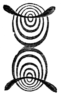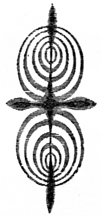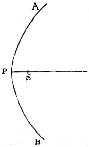On account of the reciprocal action of matter, the stability of the system depends upon the intensity of the primitive momentum (N. 59) of the planets, and the ratio of their masses to that of the sun; for the nature of the conic sections in which the celestial bodies move depends upon the velocity with which they were first propelled in space. Had that velocity been such as to make the planets move in orbits of unstable equilibrium (N. 60), their mutual attractions might have changed them into parabolas, or even hyperbolas (N. 22); so that the earth and planets might, ages ago, have been sweeping far from our sun through the abyss of space. But as the orbits differ very little from circles, the momentum of the planets, when projected, must have been exactly sufficient to ensure the permanency and stability of the system. Besides, the mass of the sun is vastly greater than that of any planet; and as their inequalities bear the same ratio to their elliptical motions that their masses do to that of the sun, their 12mutual disturbances only increase or diminish the excentricities of their orbits by very minute quantities; consequently the magnitude of the sun’s mass is the principal cause of the stability of the system. There is not in the physical world a more splendid example of the adaptation of means to the accomplishment of an end than is exhibited in the nice adjustment of these forces, at once the cause of the variety and of the order of Nature.