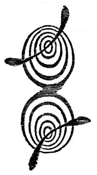 The spiral nebulæ of 51 Messier, as seen by Lord Rosse, 1 in plate 10, represents fig. 4 of plate 8; and fig. 2 in the same plate is part of the great nebula in Orion, for the whole has never been seen, on account of extreme remoteness.