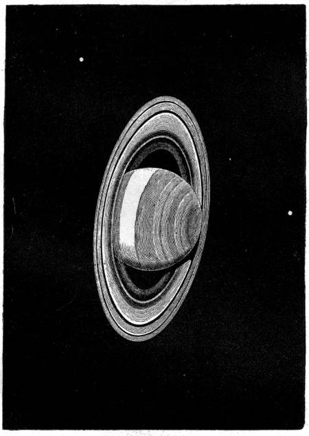 1. An enormous ring seen obliquely with a dark centre and a small star at each extremity.