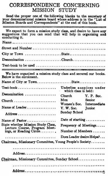 If the address of the secretary of the Foreign or Home Mission Board or Society of your denomination is unknown, orders may be sent to the Missionary Education Movement. All persons ordering from the Missionary Education Movement are requested to indicate their denominations when ordering.