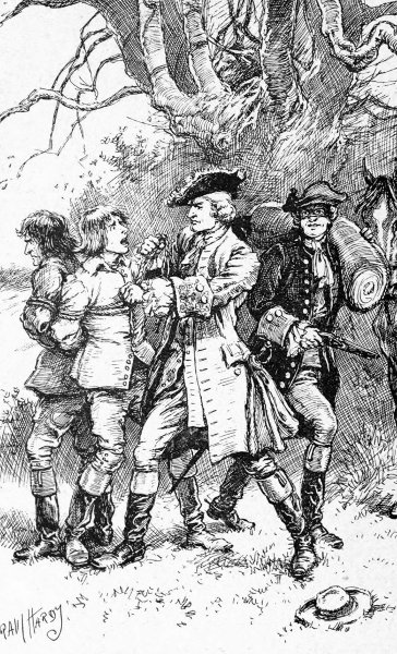 Jackson was at that time treasurer, and was given charge of the day's takings; and then, finding they had done sufficient for the day, they agreed to separate, and to meet at a given rendezvous the next day. Jackson was also detailed to take charge of the new recruit, who was wretchedly mounted. As they rode along, he bound the sailor, over and over again, by many oaths, to stand to his new resolution. At length, in a solitary lane, while Jackson was innocently discoursing upon the new life that lay before him, the sailor pulled his miserable horse suddenly against the other, and, as suddenly drawing a pistol and seizing his companion's bridle, clapped the ugly brass-barrelled weapon against his breast, and swore as bloodily as if he had been one of the trade for more than twenty years that he would send a bullet into his heart if he did not instantly dismount.
