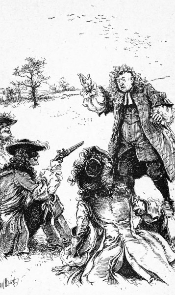 Dudley had his ready answer. "I expect," he said, "no favour from the hands of a gaoler, who comes of the race of those angels that fell with Lucifer from Heaven, whither you'll never return again. Of all your bunches of keys, not one hath wards to open that door, for a gaoler's soul stands not upon those two pillars that support Heaven: Justice and Mercy. It rather sits upon those two footstools of Hell, Wrong and Cruelty So"—changing his didactic manner for a more business-like attitude—"make no more words about your purse, for have it I will, or else your life."