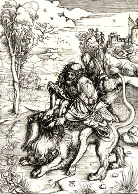 [117] Albert Dürer ajouta facilement foi à cette fausse nouvelle de l'emprisonnement et de la mort de Martin Luther, et il en fut fort attristé. Cet enlèvement n'avait pourtant pas été fait par ses ennemis, mais par ses amis. Lorsque Luther fut mis au ban de l'empire par Charles V, l'électeur, Frédéric III de Saxe, craignit qu'il ne lui arrivât malheur. Il résolut donc de le mettre en lieu sûr, et donna l'ordre à quelques hommes de confiance de l'enlever. Cet ordre fut exécuté par Jean de Berlepsch et Burkard de Kund, accompagnés de trois valets, le 4 mai 1521, pendant que Luther traversait la forêt de Thuringe, entre le château d'Altenstein et la petite ville de Walterhausen; on l'emmena sous un déguisement au château de Wartburg, près d'Eisenach. Là, il écrivit plusieurs ouvrages et y resta jusqu'au 1er mars de l'année suivante, époque à laquelle il retourna à Wittenberg.