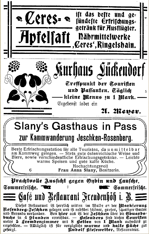 Herrn Josef Mohr in Rumburg, dem Sachwalter der vereinigten Gebirgs- und Naturvereine, sage ich für sein liebenswürdiges Entgegenkommen den verbindlichsten Dank mit dem Wunsche: unser Kammweg möge in der Touristenwelt zu ähnlichem Rufe gelangen wie der altberühmte Rennstieg im Thüringer Walde!