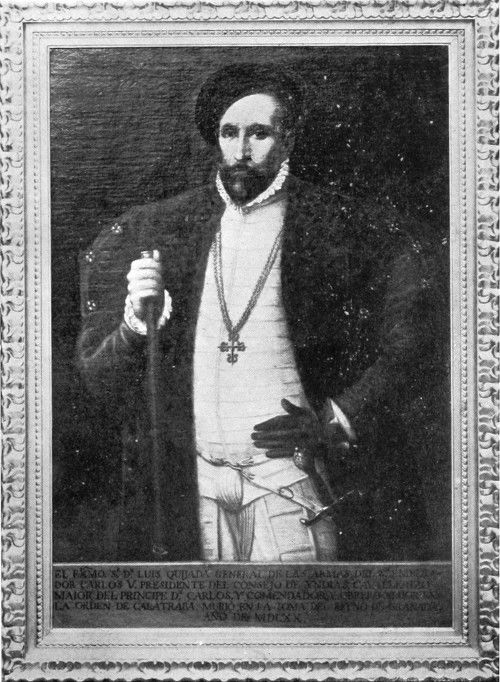 10. The remains of Luis Quijada were translated two years later with much pomp to the church of S. Luis at Villagarcia by Doña Magdalena de Ulloa, where she also now rests near the high altar. The figure of his tomb no longer exists, but the inscription still does, which says that he is buried under the altar and that he died "as he would have wished, fighting against the infidel, 25 Feb., 1570" (note abridged by Translator).