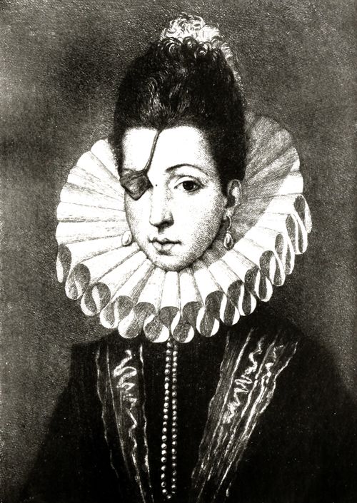 This portrait is by Juan Pantoja de la Cruz (1551 circa 1609), and is in the Prado Gallery, Madrid.