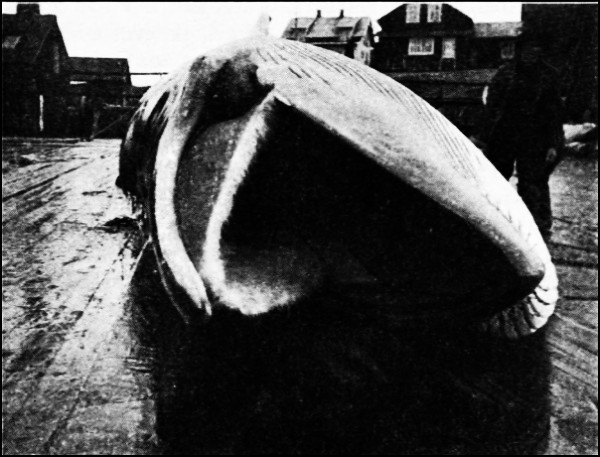 Blubber (which is from 8 to 20 ins. thick) is stripped from the whale as soon after capture as possible. Generally the dead whale is made fast alongside the whaler, a deep, spiral cut is made round its body, and the blubber is stripped off and hauled aboard. This is then cut into pieces, chopped up in mincing machines and fed into melting pans and heated with steam, often under pressure. The oil gradually exudes and collects upon the water, the cell membranes, etc.—the greaves—settling to the bottom. At the conclusion of the boil, the oil is drawn off from above the aqueous (gluey) layer, and is clarified by straining through sieves or filters. The “greaves” is placed in hair or woollen bags and submitted to hydraulic pressure, by which means a further quantity of oil is obtained.