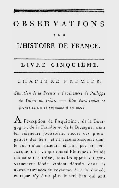 Il faut avouer cependant que cet appui des fiefs devoit ne conserver aucune force, dès qu’il ne seroit plus lui-même aidé et soutenu par les trois autres soutiens du gouvernement féodal dont j’ai parlé; et les seigneurs français se comportoient de la manière la plus propre à les détruire.