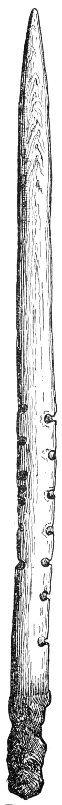 It has a better finish, and displays greater skill in its manufacture than the fire-tools of the neighboring tribes of Shoshonian (Utes) and 538 Moquelumnian stocks. In fact, it has a close affinity in appearance to those of the very near Athapascan (Hupa, etc.) stock. It is a matter of very great interest to compare with this a stick from the Mackenzie River. (See Fig. 28.) The resemblance is striking; it is as though one found a word of familiar sound and import in an unexpected place. The related tribes of the Indians dwelling on the Mackenzie have a wider range than the distance between the localities whence the respective sticks came; in fact, the Athapascans range about 50 degrees in latitude and the southern colonies of this great family are only about 250 miles southeast of the Washoans, while, as has been stated, the Hupas are quite near.