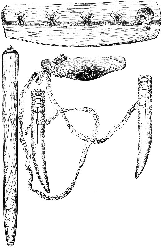 These specimens from Costa Rica are the crudest fire tools, not to be mere make-shifts, that have come to my notice or have been described in the literature examined. The Costa Rican Indians are very interesting in their preservation of several other arts that may justly be classed among the most ancient. One may be mentioned, that of bark cloth making. Professor Gabb made quite a collection from Talamanca, but has not left any notes on these remarkable people, who are well worthy of the careful study of ethnologists.