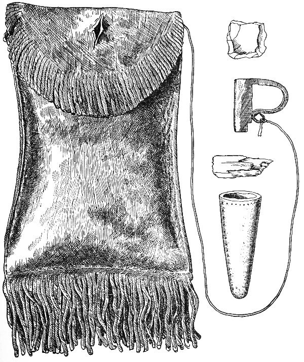 Fig. 52. Strike-a-light (flint, steel, tinder-horn, spunk, and pouch).