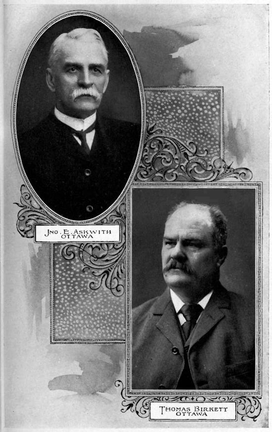Gill, Robert, of Ottawa, a gentleman well known to the seniors of Canadian finance, is one of the best known citizens of the Canadian capital, where he has resided since 1876. He has been especially identified with the history of the Canadian Bank of Commerce, of which institution he was a trusted officer for over forty years. He was born at Dundas, Ont., on September 30, 1851, the son of William and Alison (Sanderson) Gill, both his parents being of Scottish Border origin. He was educated at Upper Canada College, Toronto, and entered the service of the Bank of Commerce at the age of nineteen. This was in 1870, and the Bank was but three years old. In its expansion during the next few years Mr. Gill actively participated; his promotions were rapid, and in 1874 he was appointed manager of the Galt, Ont., branch. In 1876 he was transferred to the Ottawa branch, which was regarded as one of the most important in the Bank of Commerce chain of agencies. In 1880 he was appointed an Inspector of the Bank and retained that position until 1887 when he was appointed Manager of the Ottawa branch, which had attained a very important position in the financial life of the capital. Under his regime it attained a wide expansion of business and he continued to direct its affairs until 1911, when he retired on pension after forty-one years’ service. During his career with the Bank of Commerce he proved himself not only a practical banker with a complete understanding of the needs of the business community, but an able thinker and essayist on financial questions. Among his publications was one on the subject of Post Office Savings Banks reprinted in the “Canadian Banker’s Journal” for the use of the United States Currency Commission. Since his retirement from active business he has lent his services and influence to the promotion of patriotic and other objects of public welfare, and during the late war was Vice-President of the Executive of the Ottawa branch of the Canadian Patriotic Fund. He is also a Life Governor and Vice-President of St. Luke’s Hospital in that city, and in June, 1916, was appointed a member of the Military Hospitals Commission. From 1899 to 1906 he was honorary captain and paymaster of the Governor-General’s Foot Guards. He is a prominent figure in the social life of his chosen city, and in 1914 was elected President of the Rideau Club of Ottawa, a position he still holds at the time of writing. He is also a member of the following other clubs: Country (Ottawa), St. James (Montreal), York (Toronto), Ottawa Golf, R.C.Y.C. (Toronto) and the Constitutional (London, Eng.). He is a Past President of the Ottawa Literary and Scientific Society, member of St. Andrew’s Society (Ottawa), the Royal Canadian Institute and the Archæological Society of America, and a life member of the Royal Colonial Institute (England). His recreations are golf and angling; in religion he is an Anglican and in politics, a Conservative. Mr. Gill was first married on September 20, 1881, to Caroline, daughter of John Gilmour of “Marchmont,” Ottawa, by whom he has one surviving son, Major Allan Gilmour Gill, who during the late war commanded the 45th Battery, Canadian Field Artillery, overseas. This lady passed away on April 19, 1884, and Mr. Gill married again on November 20, 1899, Anna Louise, daughter of the late W. R. Thistle, by whom he has three sons, Henry Robert Thistle, Evan William Thistle and Francis Egan Thistle. His permanent residence is at 281 O’Connor Street, Ottawa, and he has a summer residence, “Gillcairn,” at St. Andrew’s, N.B.