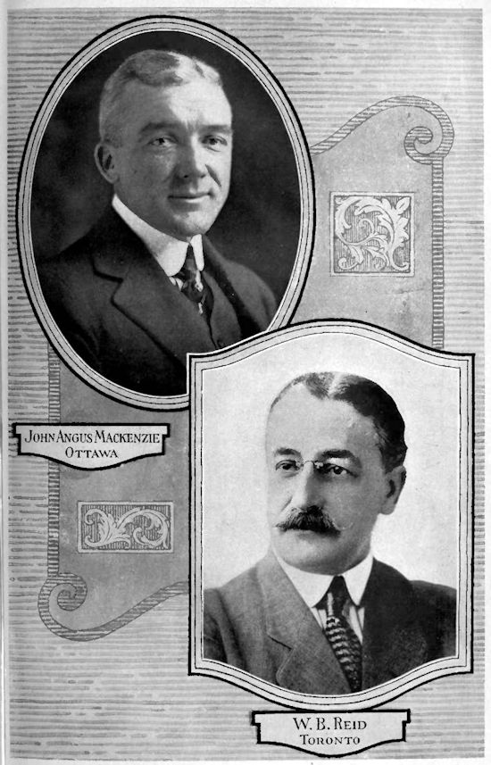 The vast majority of those whose careers were recorded in 1886 have passed away; and the same is true of those who figured in the second volume of the series. Consequently, the earlier issues of “Representative Canadians” grow every day more precious, for, in many cases, they contain the sole records of men who initiated great enterprises or furthered important movements which have left a lasting mark on the history of Canada. We cannot but think that the reader who, thirty or forty years hence, may chance to scan the pages of the present volume will gather a very vivid picture of Canada as it was in one of the crucial periods of the world’s affairs—a picture in which the characters of those Canadians who lived and “carried on” through the years of the greatest war in all history may be discerned in the records of their lives. There is hardly a page in this book into which the war does not enter directly or indirectly in some form or other, by way of allusions to services rendered, bereavements endured, or honours gained on the field of battle. In that sense the 1919 volume must remain unique, and a mine of useful information for students in future generations.