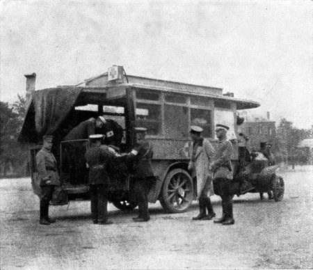 »Ein Offizier, begleitet von einem Soldaten. Beide leisten ihre Dienstpflicht im Freiwilligen Automobilkorps.«