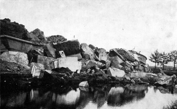 Die Schützengräben verlaufen nicht in geraden Linien, wenn nicht etwa, wie südlich von Antwerpen, das Land völlig eben ist.[S. 172] Sonst richten sie sich nach den Formen des Bodens. Im allgemeinen werden sie so angelegt, daß sie nach dem Feinde zu freie Aussicht haben und Überrumpelungsversuche erschweren. Ein Schützengraben hat daher gewöhnlich eine sehr unregelmäßige Form, er gleicht einer Kurve mit Ausbuchtungen nach vorn und hinten. Oft zerfällt er auch in mehrere kleine Sektionen. Den Zwischenraum zwischen den verschiedenen Teilen füllen Stacheldrahtnetze und andere Hindernisse aus. Oft ist ein Schützengraben dem Artilleriefeuer besonders ausgesetzt; wenn er in einer stark gewellten Linie verläuft, können einzelne Strecken den Bahnen der feindlichen Geschosse parallel liegen und von dem Artilleriefeuer buchstäblich reingefegt werden. Um sich dagegen zu schützen, graben die Soldaten sogenannte Traversen, ganz kurze Zweiggräben, die sich von dem großen Schützengraben im rechten Winkel abzweigen. Zu diesen Schutzgängen nehmen die Soldaten ihre Zuflucht, wenn das Feuer auf den Hauptgraben eingestellt ist.