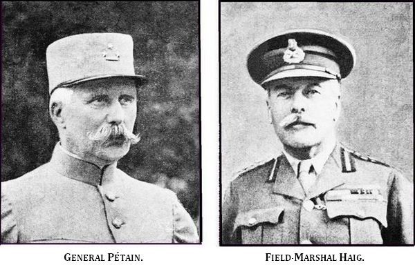 Besides this numerical and material superiority, Germany possessed [Pg 7] the additional advantage of a unique commander: Ludendorff, master of the hour, at once absolute military chief and political dictator. On the other hand, whilst the Allies were closely united by cordial friendship, sealed on the field of battle, their armies were independant units, separately commanded, each having its own reserves concentrated behind its particular front.