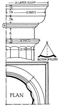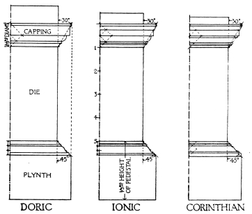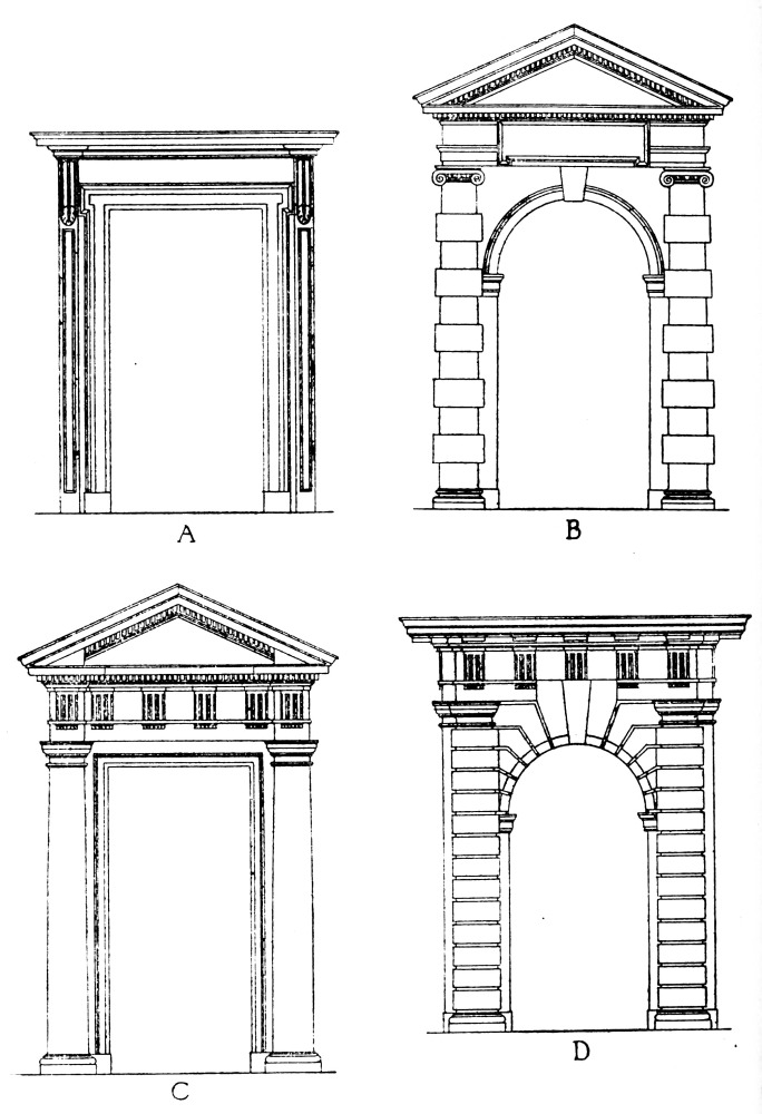 | Introduction, p. 158—System of Proportion, p. 159—The Order, p. 160—Doric Order, p. 161—Ionic Order—Corinthian Order, p. 163—Doric Entablatures—Mutules, p. 164—Ionic Entablature, p. 169—Corinthian Entablature, p. 171—The Column, p. 172—The Capital—Doric Capital, p. 173—Ionic Capital—Ionic Volute, p. 175—Corinthian Capital, p. 178—The Base, p. 180—Doric Base, p. 181—Ionic Base, p. 182—Corinthian Base—The Arch, p. 184—Doric Impost, p. 185—Doric Archivolt—Ionic Impost, p. 186—Ionic Archivolt—Corinthian Impost—Corinthian Archivolt—The Keystone, p. 187—The Pedestal, p. 188—Doric Pedestal, p. 189—Ionic Pedestal—Corinthian Pedestal, p. 190—The Baluster, p. 191—Spacing of Balusters—Balustrading, p. 193—Use of Columns, p. 194—Disposition and Spacing in Colonnades, p. 195—Orders above Orders, p. 197—The Pilaster, p. 199—Arcades, p. 200—The Subsidiary Order, p. 202—Treatment of Superimposed Orders, p. 204—Rustication, p. 205—The Basement, p. 207—The Attic, p. 208—The Pediment, p. 209—Doors, p. 211—Windows, p. 213. | ||