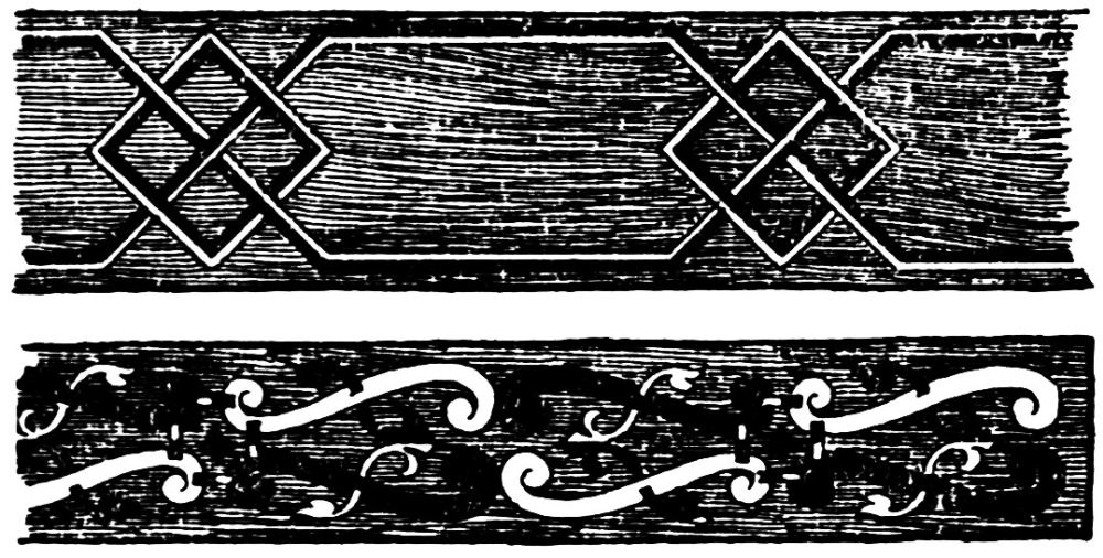 | Natural Attraction, p. 288—Decorative Materials, p. 289—Justification of Treatment, p. 290—Undesirable Imitation, p. 291—Technical Considerations—Methods of Expression, p. 292—Treatment of Leaves, p. 293—Surface Interest—Painted Decoration, p. 294—Stencilled Work, p. 295—Mechanical Production—Printed and Woven Fabrics—Needlework—Appliqué, p. 296—Lace-Wood Inlay—Intarsia, p. 297—Veneer—Marquetry—“Boule” Work, p. 298—Mosaic, p. 299—Byzantine use of Marble—Book Decoration, p. 300—Bindings—Relief Work—Economic Result of Method—Desirable Treatment in Carving, p. 301—Backgrounds, p. 303—Reproduction Processes—Metal Repoussé, p. 304—Cast Metal, p. 306—Character of Cast Work, p. 307. | ||