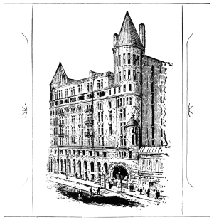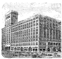 The most massive hotel structure in the world, built entirely of stone and iron, ten stones high, absolutely fire-proof. Overlooking Lake Michigan, situated within four blocks of the business centre of the city. American and European plans.