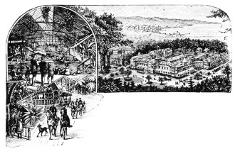 On the hotel grounds is the best tennis-court in the State, well-arranged and complete in every detail, with club-room, baths, etc. There is also a nursery of several acres and a large green-house, where the most beautiful and delicate flowers bloom the year round, and the hotel draws from this source the freshness and fragrance of perpetual spring.