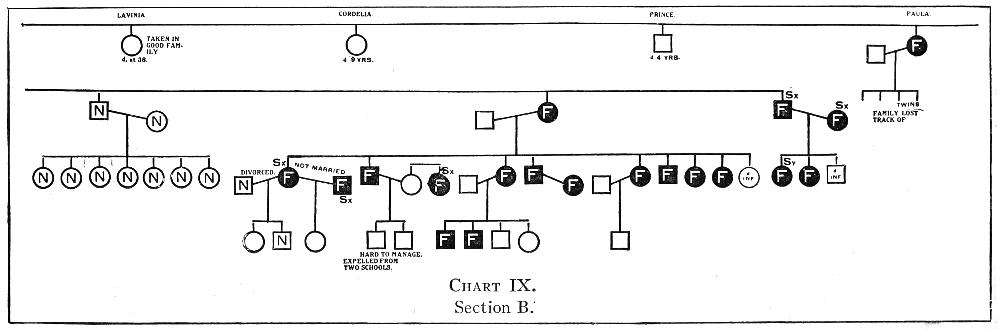 We shall not go further into this matter in the present paper, but leave the detailed study of this family from the Mendelian standpoint for further consideration, when we take up the large amount of data which we have on three hundred other families. Enough is here given to show the possibility that the Mendelian law applies to human heredity. If it does, then the necessity follows of our understanding the exact mental condition of the ancestors of any person upon whom we may propose to practice sterilization.